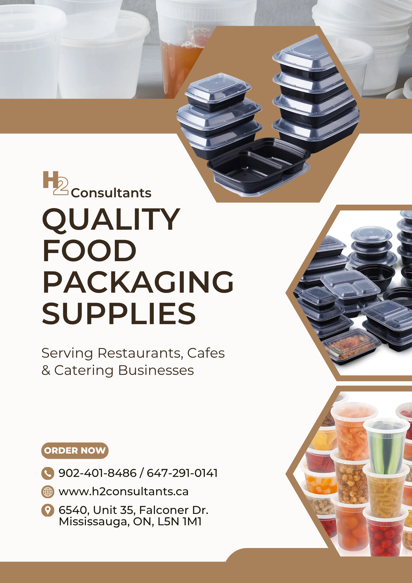 H2 Consultants is a Mississauga-based food packaging distributor dedicated to supplying restaurants, delis, cafes, and catering businesses with high-quality, food-safe packaging solutions — at prices that make sense for your business.
